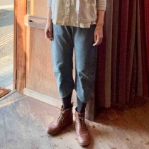 KATO'の個性的な立体裁断デニム。少し短め丈となります。ブランド:KATO'アイテム:デニムパンツカラー:ブルーサイズ:27インチ素材:コットン100%脇丈約78cm、ウエスト約72cm、股上約25.5cm、股下約47cm、渡り幅約28cm、裾幅約18cm定価2万円程度色落ち、着用感がかなりあり ...