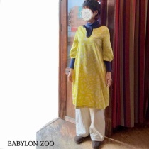 si-si-si comfortオリジナルファブリックを使用した個性的なワンピース。葉っぱや鳥をイメージしています。鮮やかなライムグリーン。黒のパイピングが引き締めてくれます。後ろ側からピンで留めています。開くのが嫌な方はお試しください。ブランド:si-si-si comfortアイテ ...